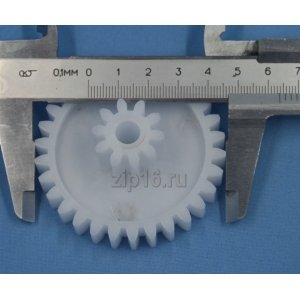 Шестерня средняя мясорубки. Размеры: диаметр нижней части 64 мм, верхней части 23 мм. Высота общая 30 мм., нижней части 13 мм. 30 и 10 прямых зуба. Диаметр отверстия 8 мм.